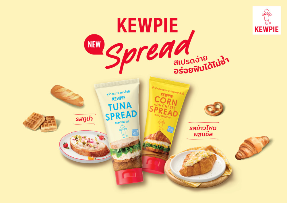 อร่อยกับทุกเมนูเบเกอรี่ ด้วย คิวพี สเปรด 2 รสชาติใหม่ ! ข้าวโพดผสมชีสสเปรด (Corn with Cheese Spread KEWPIE Brand) ลิ้มรสความเนียนนุ่มจากมายองเนสเนื้อเนียน ผสมกับเนื้อข้าวโพดและชีสแบบจัดเต็ม กัดคำไหนก็เจอความอร่อยมาเสิร์ฟถึงที่ทุกคำ และ ทูน่า สเปรด (Tuna Spread KEWPIE Brand) ที่ใส่เนื้อทูน่ามาแบบเต็มคำ มาพร้อมกับมายองเนสสูตรเฉพาะจากคิวพี ที่อร่อย ไม่ต้องปรุงเพิ่ม ที่สำคัญทั้งสองรสชาติยังไม่ใส่ผงชูรส ไม่เจือสีสังเคราะห์อีกด้วยค่ะ สเปรดง่าย อร่อยฟินได้ไม่ซ้ำ