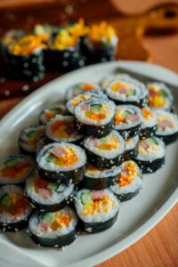 ตัดแผ่นสาหร่ายเป็นเส้นความกว้าง 1 เซนติเมตร