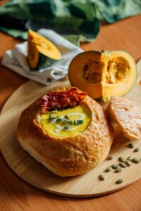 พอข้นได้ที่ ยกลงจากเตา ใส่เนยลงไปคนผสมให้เข้าได้เลย
