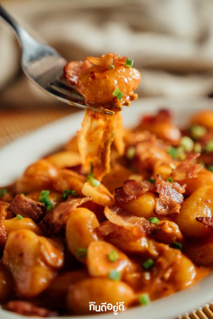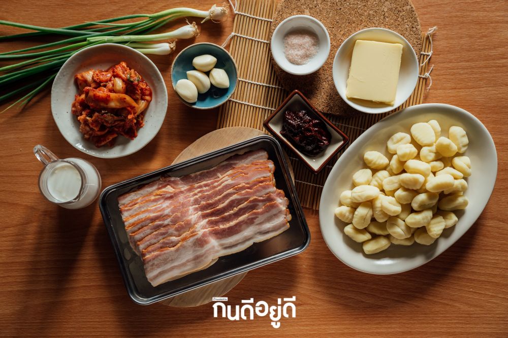 ย็อกกี้ กิมจิ เมนูฟิวชั่นผสมผสานกันระหว่างอิตาลีและเกาหลี ที่ครั้งนี้เราเลือกใช้ ย็อกกี้ (Gnocchi) เส้นพาสต้าอิตาเลียนชนิดหนึ่งที่ทำจากมันฝรั่งบดผสมกับแป้ง มีลักษณะเป็นก้อนเล็ก ๆ ทรงกลม หรือทรงสี่เหลี่ยม มีความนุ่มหนึบๆ มาปรุงเข้าด้วยกันกับวัตถุดิบประจำชาติเกาหลีอย่าง “กิมจิ” เพิ่มความนวลให้กับจานนี้ด้วยครีมสด ก็อร่อยลงตัวไปอีกแบบ