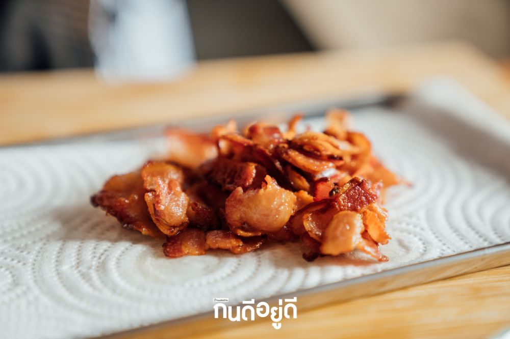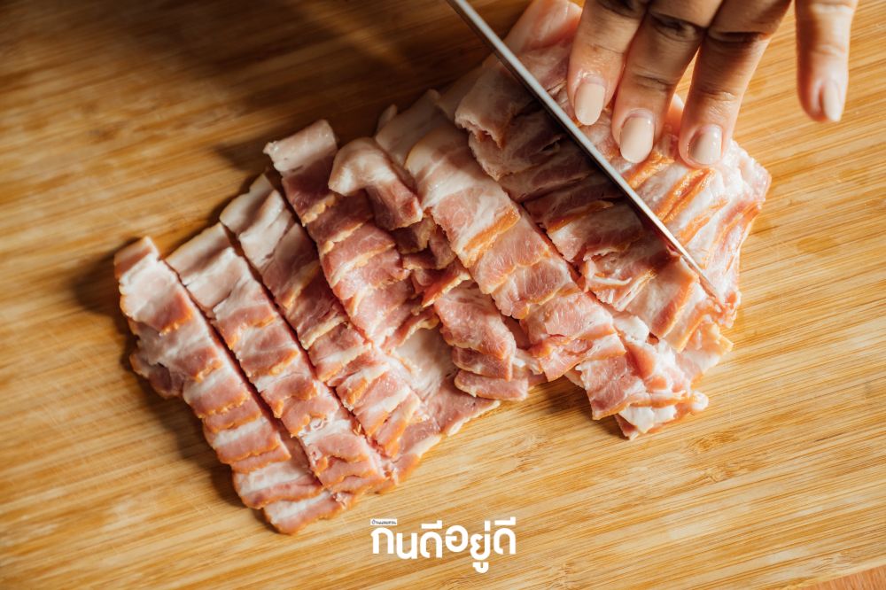 หั่นเบคอนเป็นชิ้นเล็กๆ