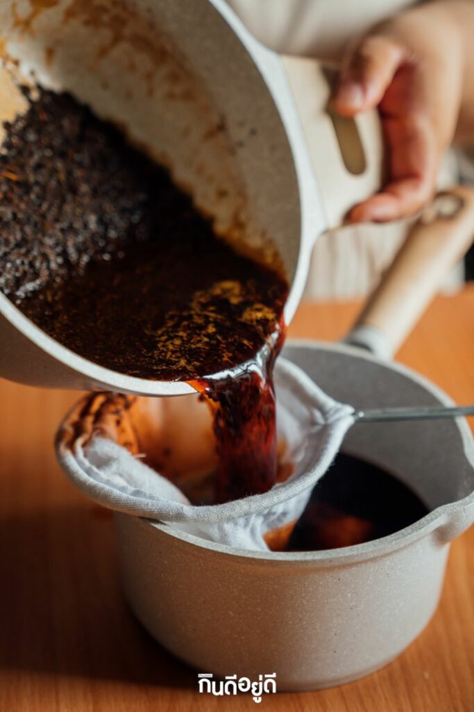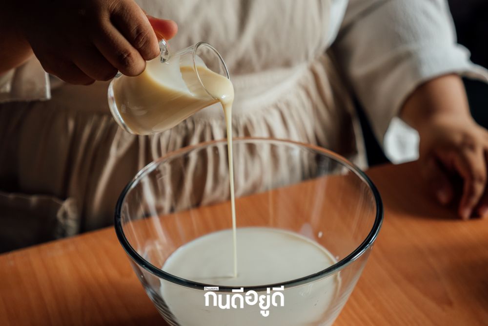 นำน้ำชาที่ได้มาใส่ในส่วนผสมของนม