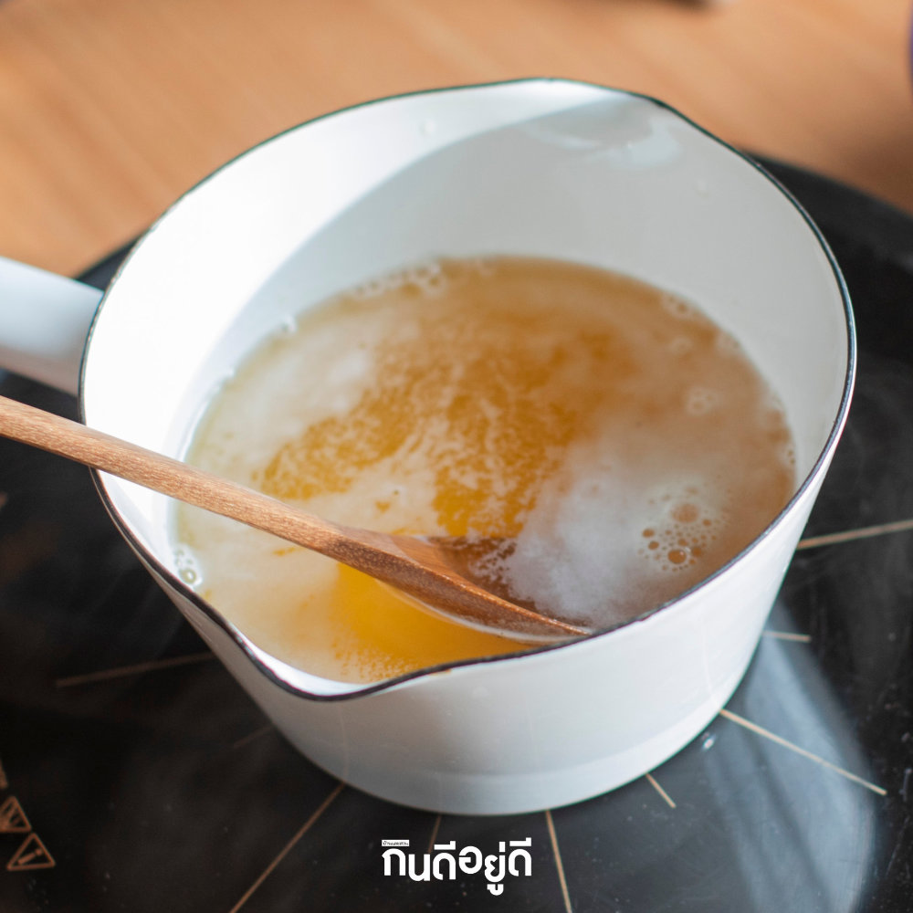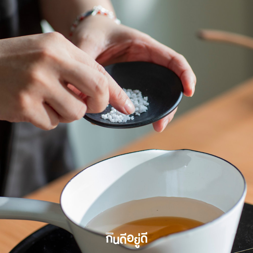 4. จากนั้นตามด้วยเกลือ 1/2 ช้อนชา เพื่อเป็นการตัดรสชาติให้กลมกล่อมขึ้น ไม่เปรี้ยว หรือหวานจนเกินไป