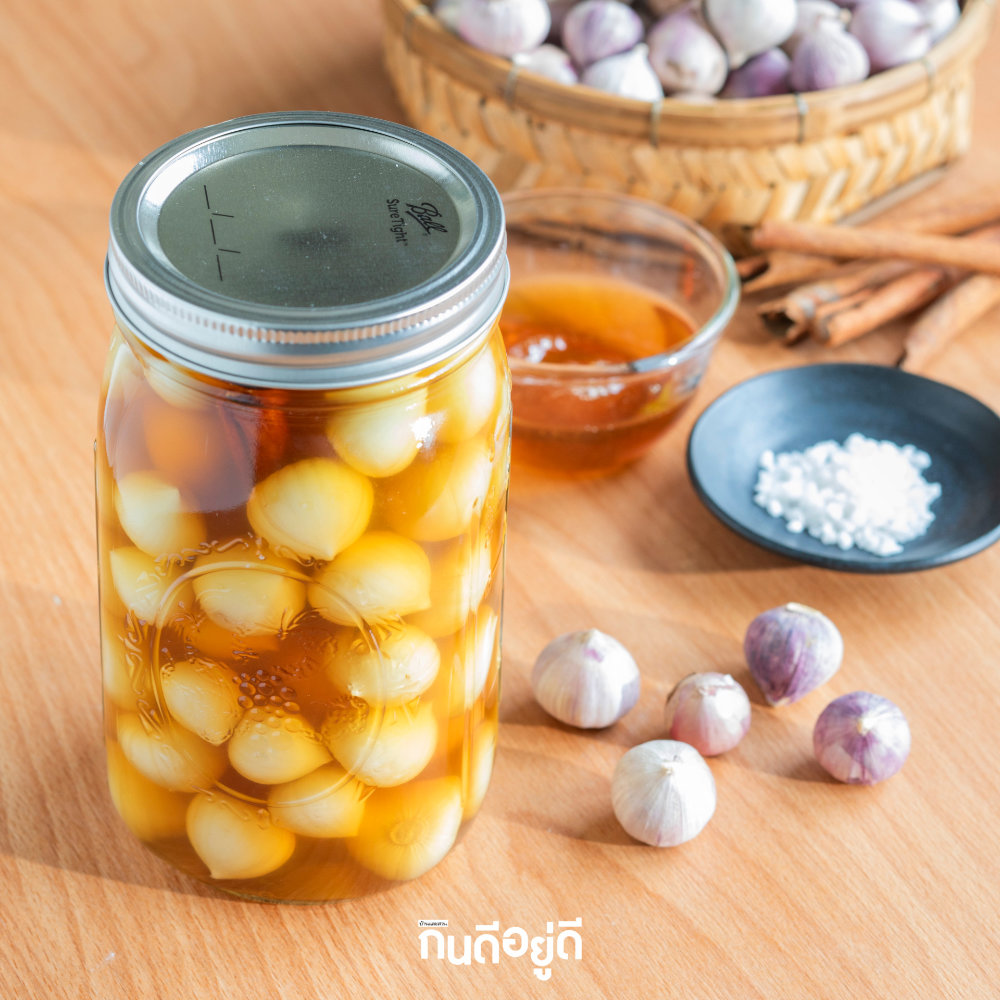 เครื่องเคียงตัดเลี่ยน ที่ไม่ว่าจะเคียงกับเมนูไหนก็ช่วยทำให้อาหารมื้อนั้นอร่อยขึ้น นั้นก็คือ กระเทียมโทนดอง สูตรนี้เราจะใช้น้ำผึ้งแทนน้ำตาล เพื่อให้ได้ความหวาน หอมละมุน สีของน้ำดองสวยน่ากิน และเพิ่มความหอมอีกขั้น ด้วยการดองรวมกับอบเชย รับรองเลยว่ากระเทียมโทนดองสูตรนี้จะไม่หวานแหลม ไม่เปรี้ยวโดด แต่จะได้รสละมุนละไม หอมน้ำผึ้ง หอมอบเชย คนที่ชอบกลิ่นอะโรม่าจากสมุนไพรต้องชอบสูตรนี้แน่นอนค่ะ