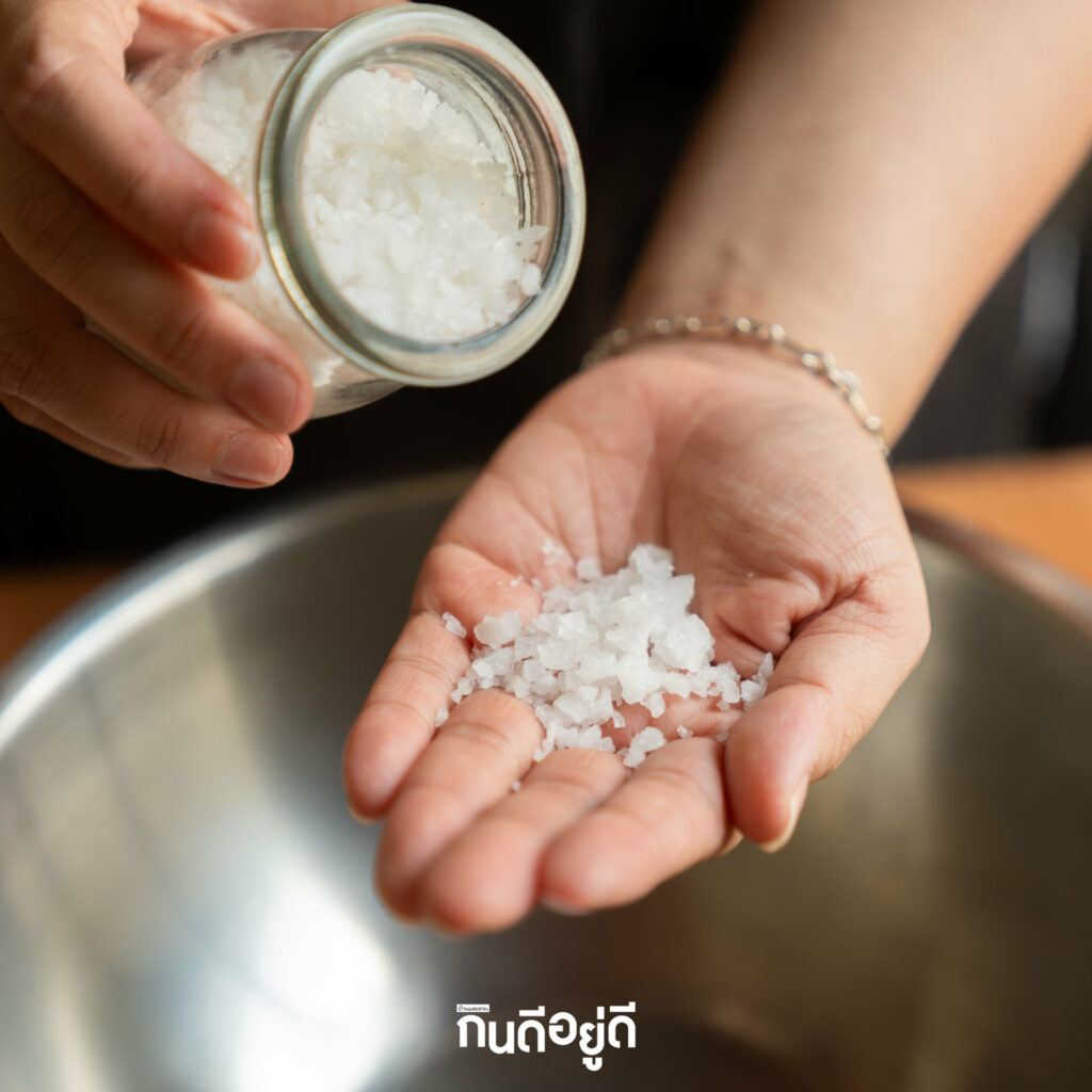 เมื่อขัดผิวด้วยเกลือแล้วนำมาล้างด้วยน้ำสะอาดอีดครั้งให้ครบทุกลูกเลยนะคะ