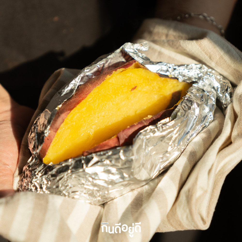 พอครบกำหนดเวลาแล้วเอาหัวมันขึ้นจากน้ำ แล้วห่อด้วยอลูมิเนียมฟอยล์